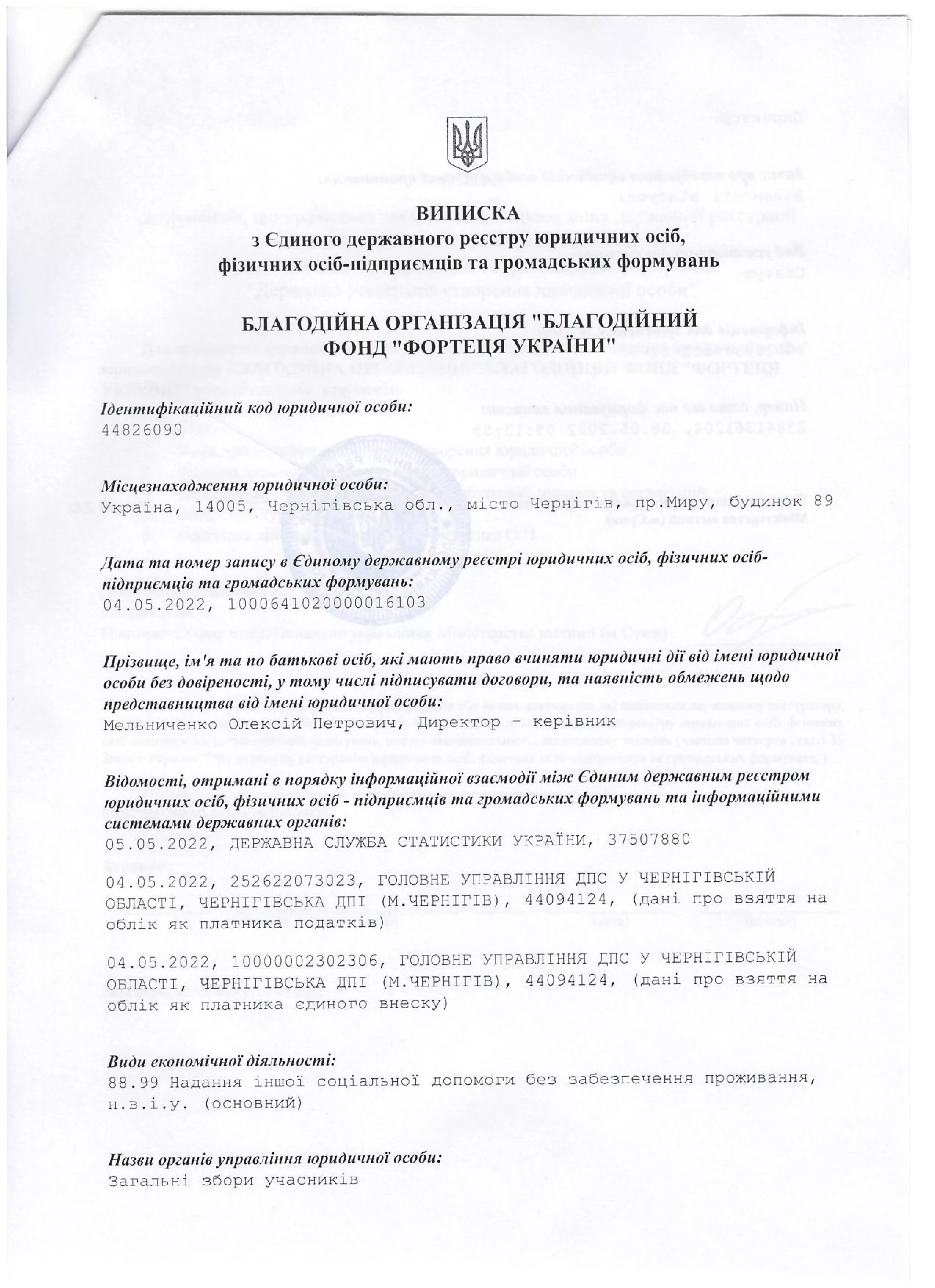 Благодійний фонд - ФОРТЕЦЯ УКРАЇНИ